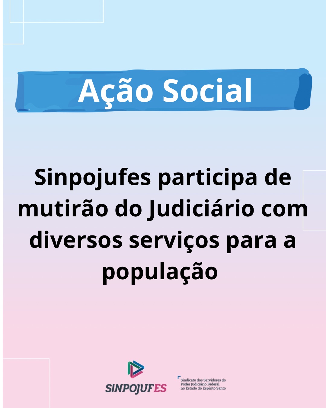 Aqui vem a Categoria Notícias do Sinpojufes Notícia: Sinpojufes participa de mutirão do Judiciário com diversos serviços para a população Aqui vem uma Categoria