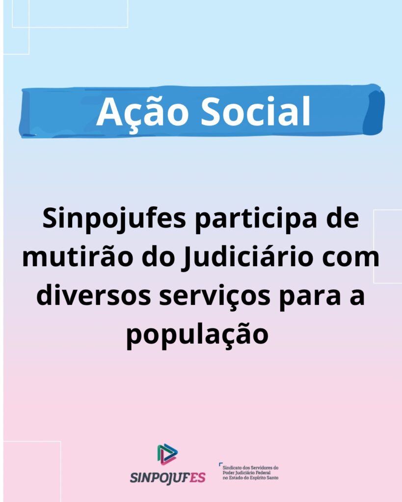 O acesso à cidadania ganhará reforço, nesta quinta-feira (04), com o 1º Mutirão PopRuaJud, realizado pelo Comitê Único Estadual PopRuaJud, das 8h às 17h, no Tancredão, em Vitória. O Sinpojufes é um dos patrocinadores dessa iniciativa, que reúne em um mesmo espaço diversos serviços essenciais e visa ampliar o acesso a direitos para a população em situação de rua.