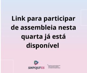 Participe da assembleia virtual realizada pelo Sinpojufes nesta terça-feira (31) LEIA MAIS Participe da assembleia virtual realizada pelo Sinpojufes nesta terça-feira (31) LEIAS MAIS