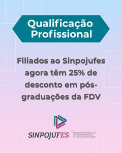 Filiados ao Sinpojufes agora têm 25% de desconto em pós-graduações da FDV LEIA MAIS Filiados ao Sinpojufes agora têm 25% de desconto em pós-graduações da FDV LEIAS MAIS