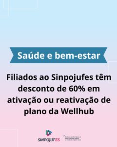 Filiados ao Sinpojufes têm desconto de 60% em ativação ou reativação de plano da Wellhub LEIA MAIS Filiados ao Sinpojufes têm desconto de 60% em ativação ou reativação de plano da Wellhub LEIAS MAIS
