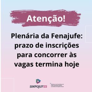 Plenária da Fenajufe: prazo de inscrições para concorrer às vagas termina amanhã LEIA MAIS Plenária da Fenajufe: prazo de inscrições para concorrer às vagas termina amanhã LEIAS MAIS