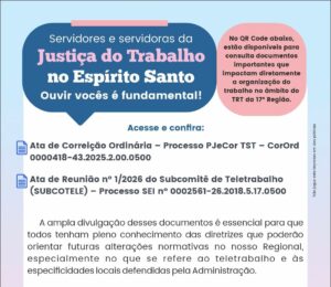 Sinpojufes convoca servidores da Justiça do Trabalho a se manifestar sobre Ata de Correição do TST LEIA MAIS Sinpojufes convoca servidores da Justiça do Trabalho a se manifestar sobre Ata de Correição do TST LEIAS MAIS